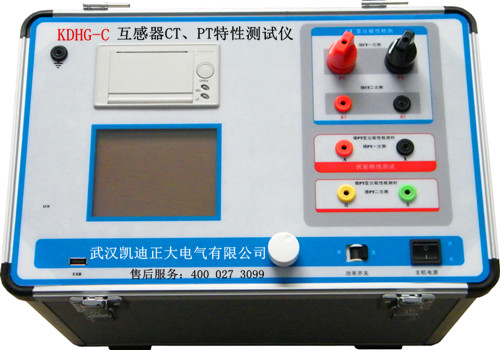KDHG系列变频式互感器特性综合测试仪是一种专门为测试互感器:PT、CT(保护类、计量类)、伏安特性(励磁特性)曲线、自动给出拐点值、自动给出5%和10%的误差曲线、变比测量、比差测量、相位(角差)测量、极性判断、一次通流测试、交流耐压测试、二次负荷测试、二次绕组测试、铁心退磁等设计的多功能现场试验仪器。