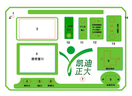 13.CT一次输入口 14.机箱右侧电源输入,~220V(±10%)