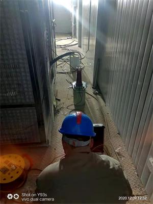 2020.12.11号前往武船集团进行10Kv变压器和10Kv电缆耐压试验。十点多钟我和技术尹工到达武船集团,经过保安检查后,到达试验现场。到现场后,看见电力施工人也都忙着安装电力设备,现场看了一遍安全环境后,就开始将设备卸车,搬往变压器室。设备搬到现场后,开始现场试验前的准备工作,摆好隔离栏,放好试验工具。做好这些准备工作,开始用kD305高压绝缘测试仪,开始测低压侧绝缘,测出A,B,c,三相对地绝缘阻织为48.8MΩ,45.6MΩ,47.2MΩ,现场记录并保存,做完相与相绝缘后,开始做高压侧绝缘,测出A,B,C三相阻织分别为87KΩ,90KΩ,88KΩ.