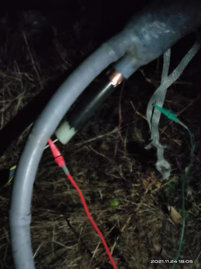 2021年11月25日,前往随州万和齐星集团光伏发电站查找一条35KV高压电缆故障。到达现场己经是中午12点多啦,到现场后与光伏电站负责人李队交接后,李队讲解了一下现场情况,是一条35KV铝芯电缆,C相跳闸,绝缘阻值在一百多兆欧,直埋电缆,一端到塔杆,一端到5号相变,横截面积是150乘3的。要加急修复,电缆两端己解开,铠装接地没解。