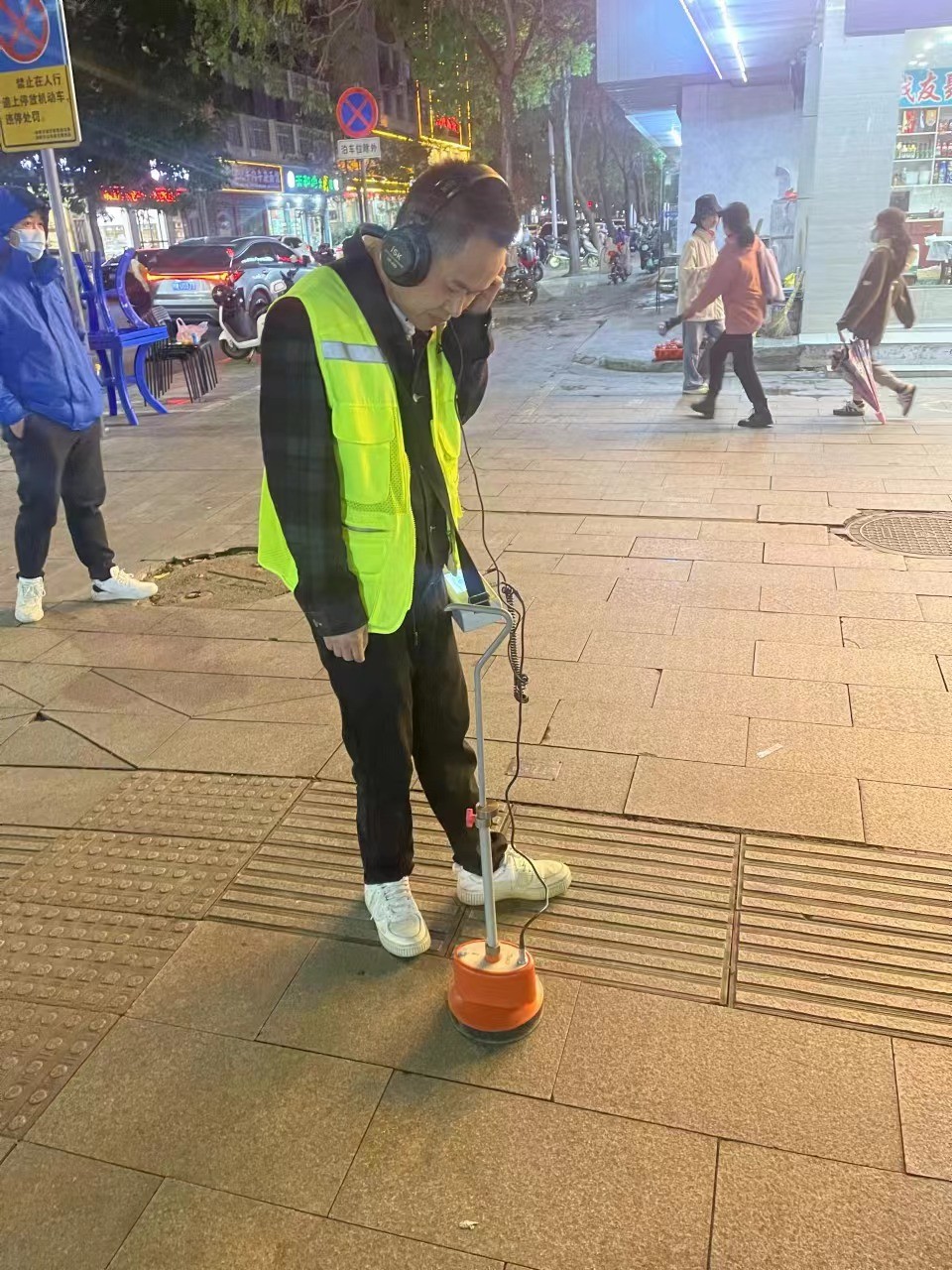 用KD212电缆综合测试仪测用高压闪络法,测出故障波形,卡位故障距离为1370米,我们直接到1370米左右地方去定点。我们一过去用定点仪,就听到电缆放电声音。听许队讲这里之前做个电缆中间接头。现场甲方也带了定点仪确定了故障点,后期开挖修复。