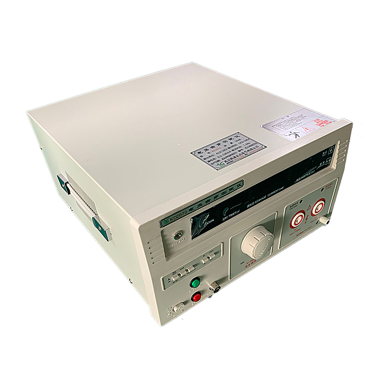 KD2670A电压击穿测试仪根据其作用可称为电气绝缘强度试验仪、介质强度测试仪等。其工作原理是:把一个高于正常工作的电压加在被测设备的绝缘体上,持续一段规定的时间,加在上面的电压就只会产生很小的漏电流,则绝缘性较好。程控电源模块、信号采集调理模块和计算机控制系统三个模块组成测试系统。选择耐压仪的2个指标:最大输出电压值及最大报警电流值的数值。