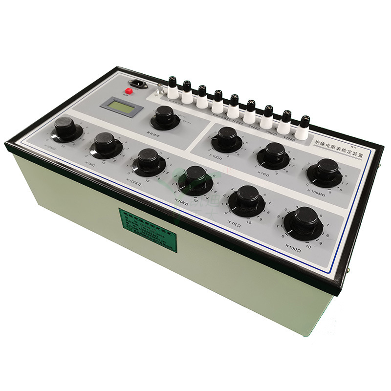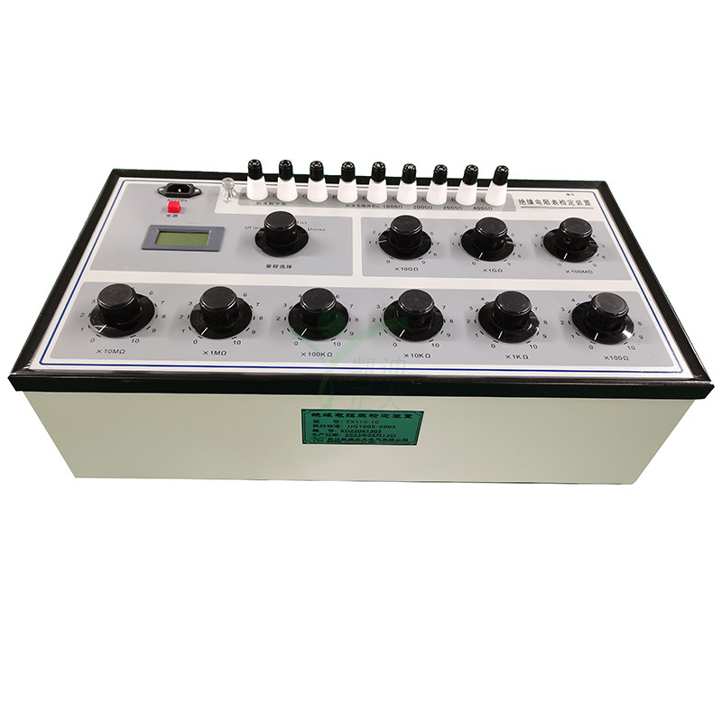 绝缘电阻表检定装置是依据JJG1005—2019《电子式绝缘电阻表检定规程》、JJG622—1997《绝缘电阻表(兆欧表)检定规程》的有关检定项目要求,并参考电力行业标准DL/T845.1—2004《电子式绝缘电阻表》通用技术条件中的相关内容设计制造的专用设备,用于检定电子式绝缘电阻表的示值误差、跌落电压(Ud)。与本公司生产的恒速器(KDCY3型)配合可检定指针式兆欧表的示值误差、开路电压(Uk)、中值电压(Uz)、峰值电压(Uf)。具有结构紧凑、性能稳定、使用方便等特点。是各工矿、企事业单位用来检定各类绝缘电阻表的设备。