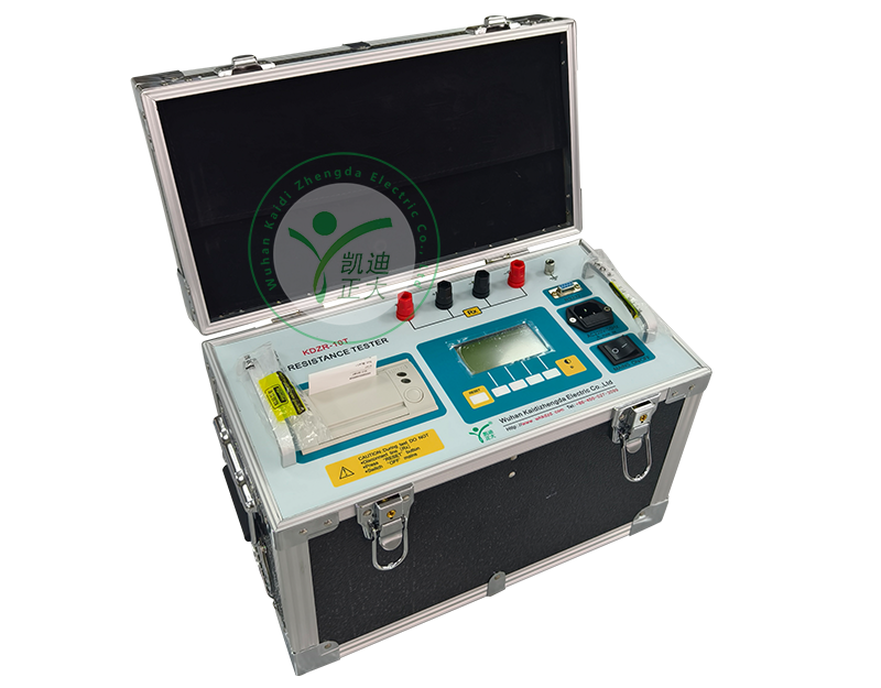 KDZR-10A 直流电阻测试仪采用程控线性恒流源技术,具有输出电流大,电流档位多,体积小,重量轻等特点。整机由单片机控制,自动完成自检、数据处理、显示、保存、打印等功能,采用精密电子测量技术,使得仪器测量精度高,测量范围宽,操作简便,可实现变压器和电压互感器的感性电阻快速测量。