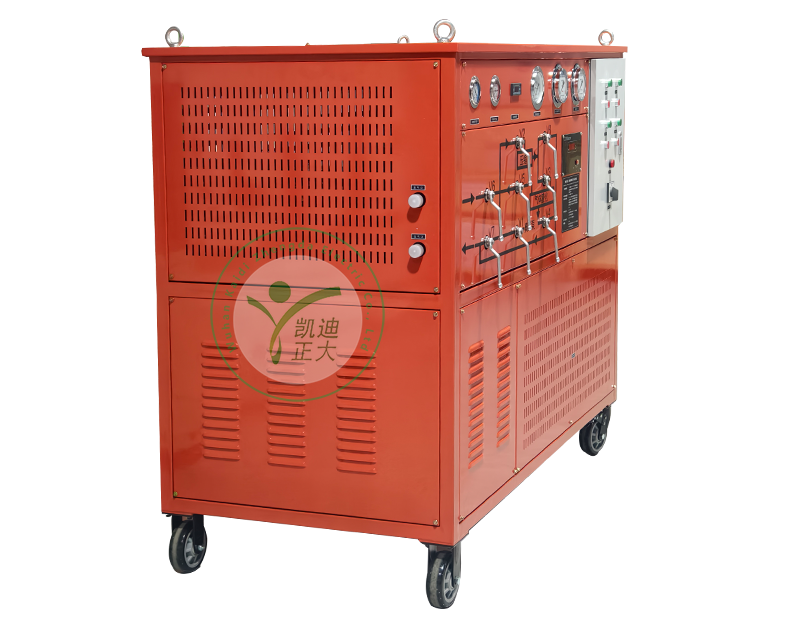 本装置由SF6气体回收净化装置组成。涉及的产品的主要优点为能直接将回收的SF6气体以液态的形式贮存入容器,并能将GIS内的残压回收至53Kpa,拥有较小的体积,便于移动的放置,拥有较快的抽真空速度,能对回收的SF6气体进行干燥和过滤,还能回充SF6气体至SF6电气设备。
