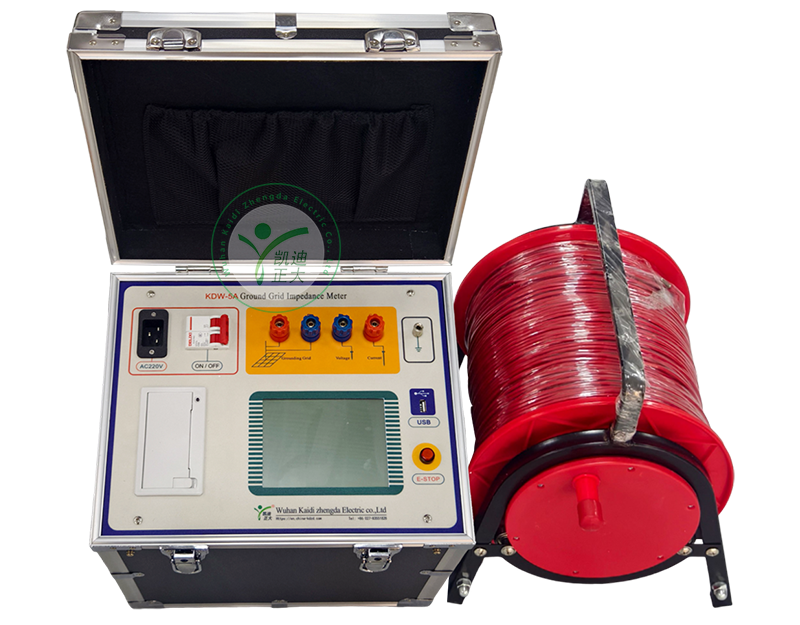 KDW-5A 接地网阻抗测试仪是一种高精度测试仪器,广泛应用于变电站等领域,用于测试接地电阻及相关参数。该仪器具有体积小、重量轻、携带方便、抗干扰能力强、精度高等特点。仪器采用一体化结构,内置变频电源模块,输出电源频率连续可调,频率可更改为 45Hz 或 55Hz,内置高速处理器核心,并采用高端数字滤波技术,从而有效避免了工频电场对测试的干扰,从根本上解决了强电场干扰下准确测量的难题。大量现场测试和用户使用情况表明,在变电站恶劣的电磁环境下进行接地网测试时,该接地网接地电阻测试仪的测量数据准确、稳定、重复性好,是测量大中型接地网特性参数的常用仪器。
