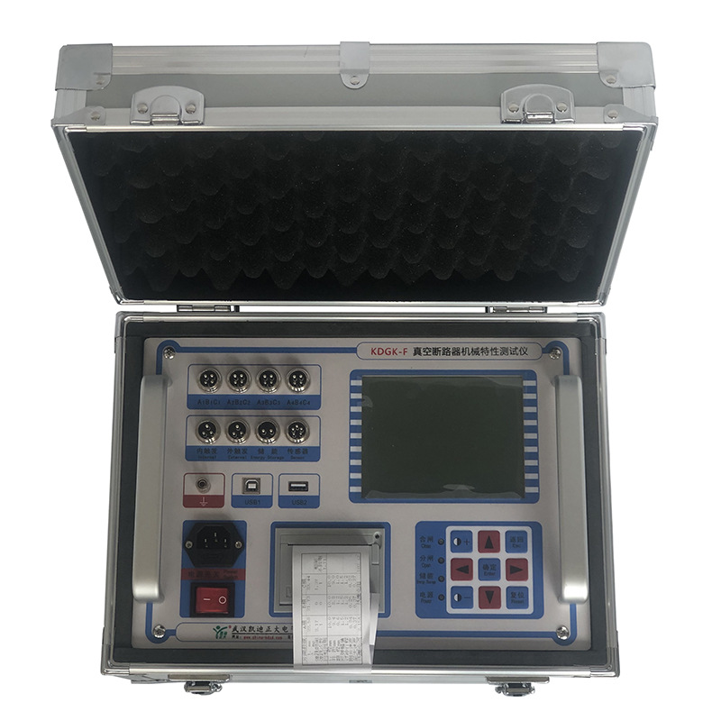 KDGK-F 断路器机械特性测试仪可用于各电压等级的真空、六氟化硫、少油、多油等电力系统高压开关的机械特性参数测试与测量。测量数据稳定,抗干扰性强,可在500KV等级及以下电站做实验,接线方便,操作简单,是高压开关检修试验常备工具。