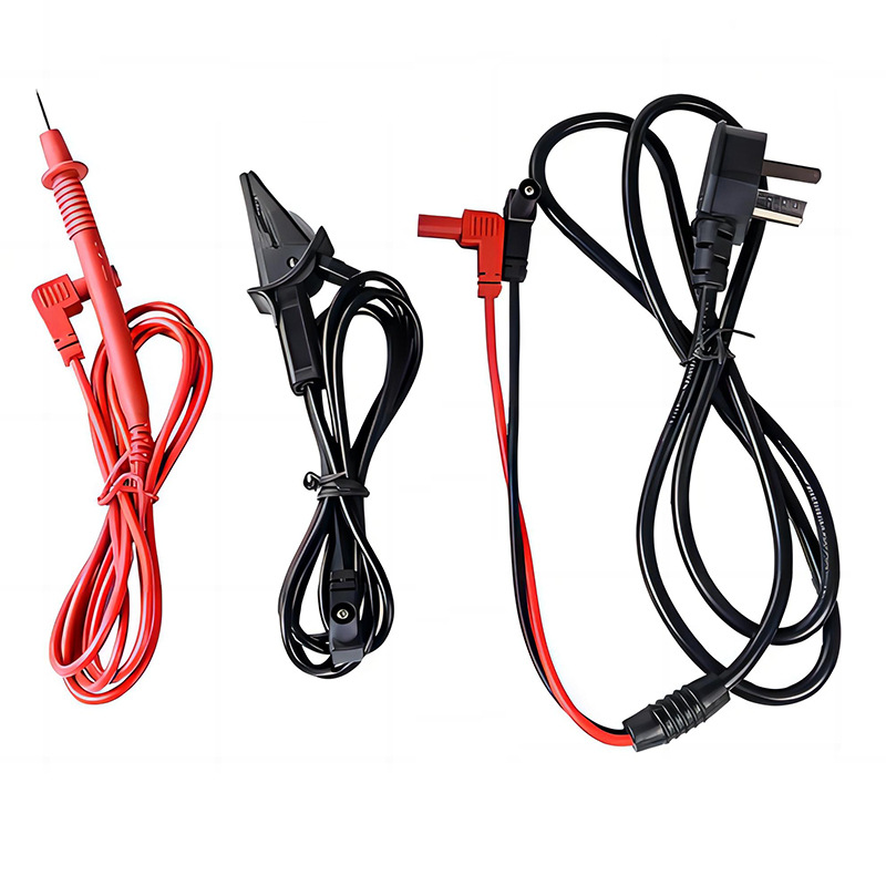 随机附件:主机:1件;布包:1件;表笔测试仪:1条;鳄鱼夹测试线:1条;插座测试线:1条;电池 LR6 :4节