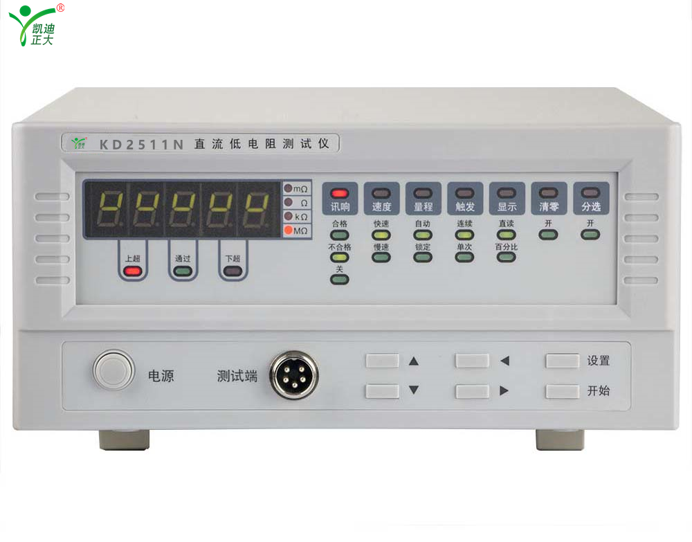 KD2511N系列微电阻测试仪是一款对变压器、电机、开关、继电器、接插件等各类直流电阻进行测试的仪器。其基本测试精度最高可达 0.05%,并具有较高的测量速度。