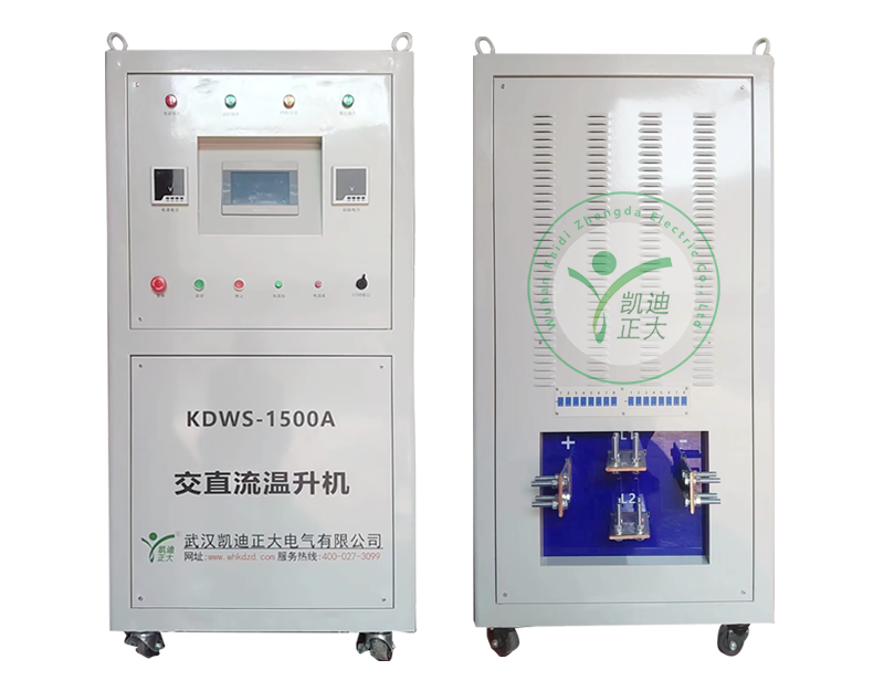 KDWS-1500A交直流温升机,采用专用系统控制板进行控制,维纶系列触控屏作为人机界面,实现的全自动交直流大电流检测设备。该系列设备通过安装不同模块,可实现不同的大电流输出,温度测量等实验。通过人机界面选择可实现手动自动操作,查看温度数据等操作并对数据进行简单处理。可增加数据导出功能,通过U盘将数据导出到计算机,做进一步处理。